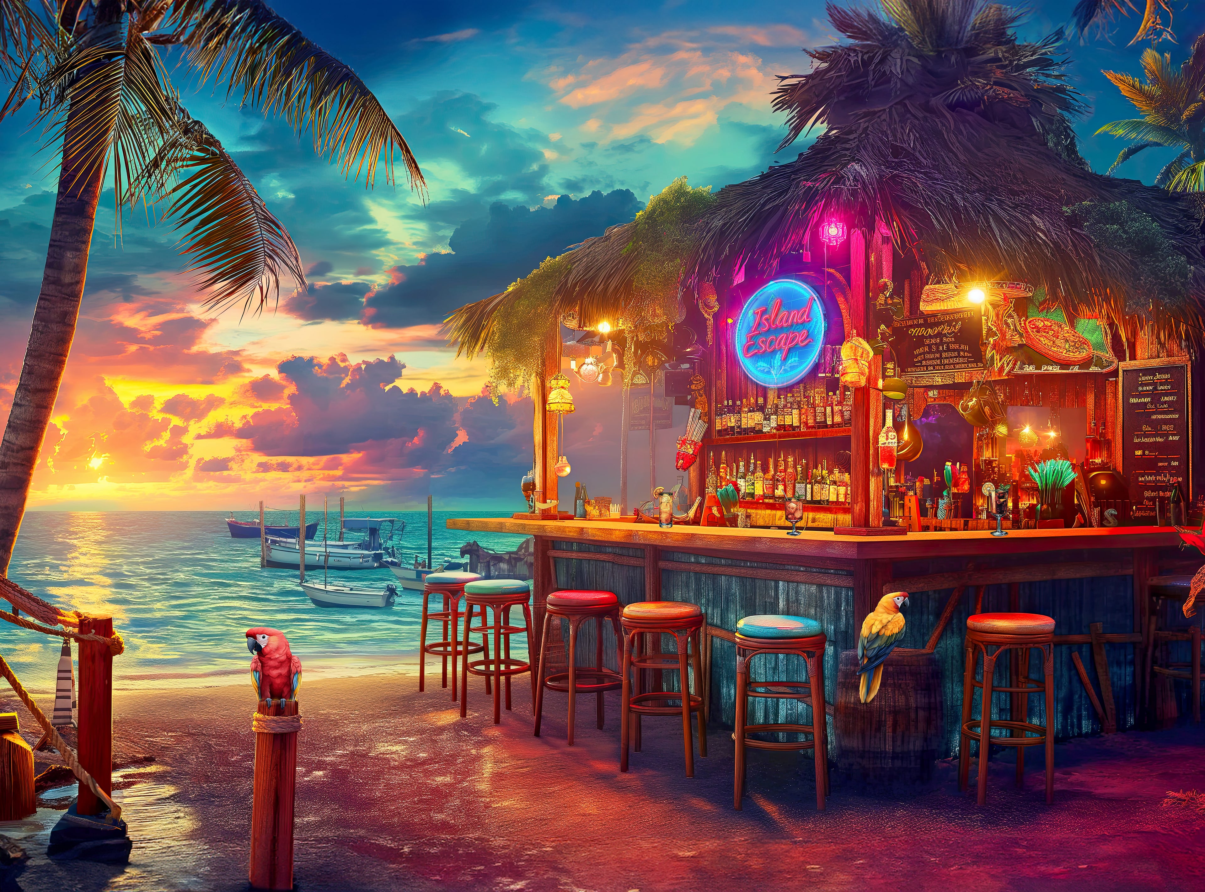 1000 Piece Jigsaw Puzzle for Adults - Beach Bar at Sunset - Island Escape